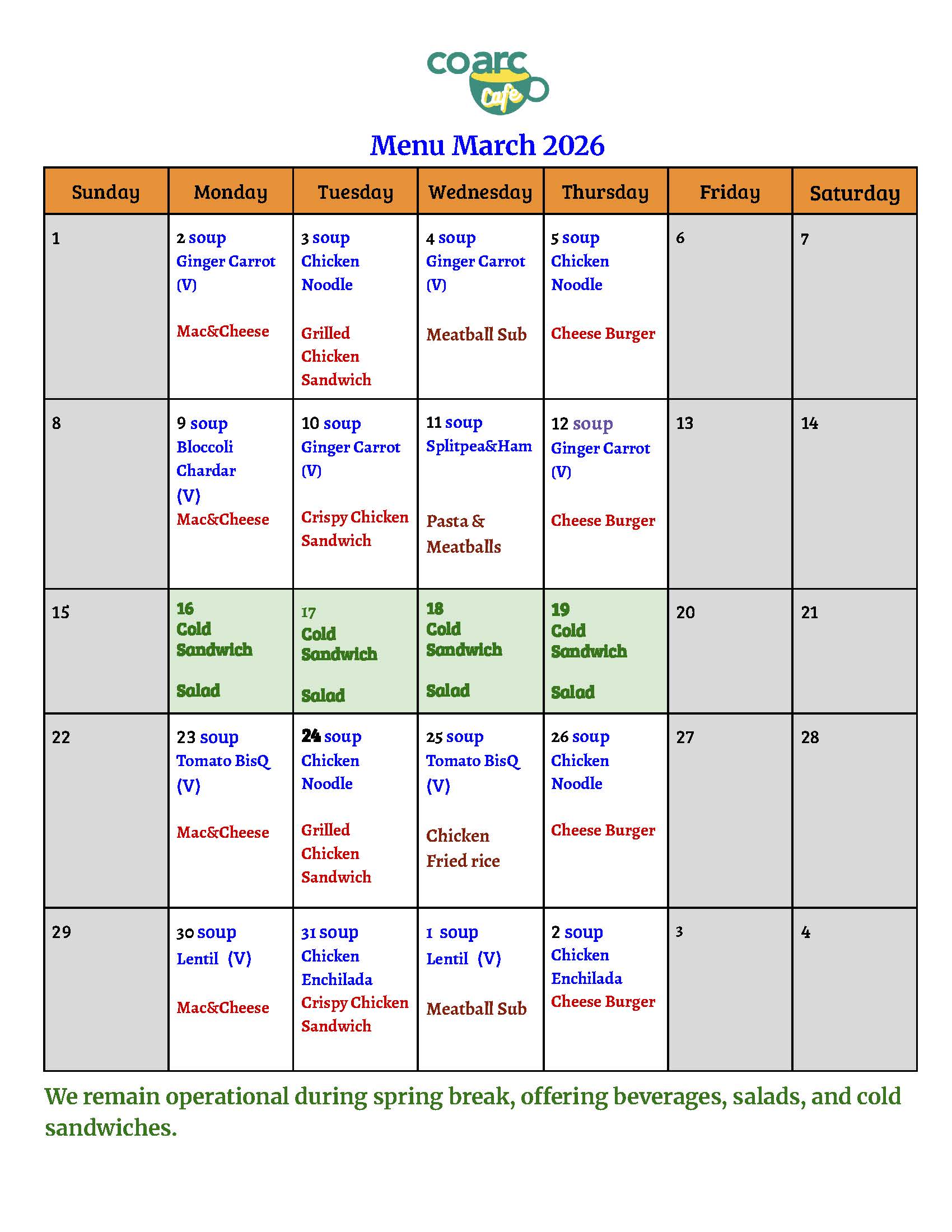 Coarc Cafe Menu