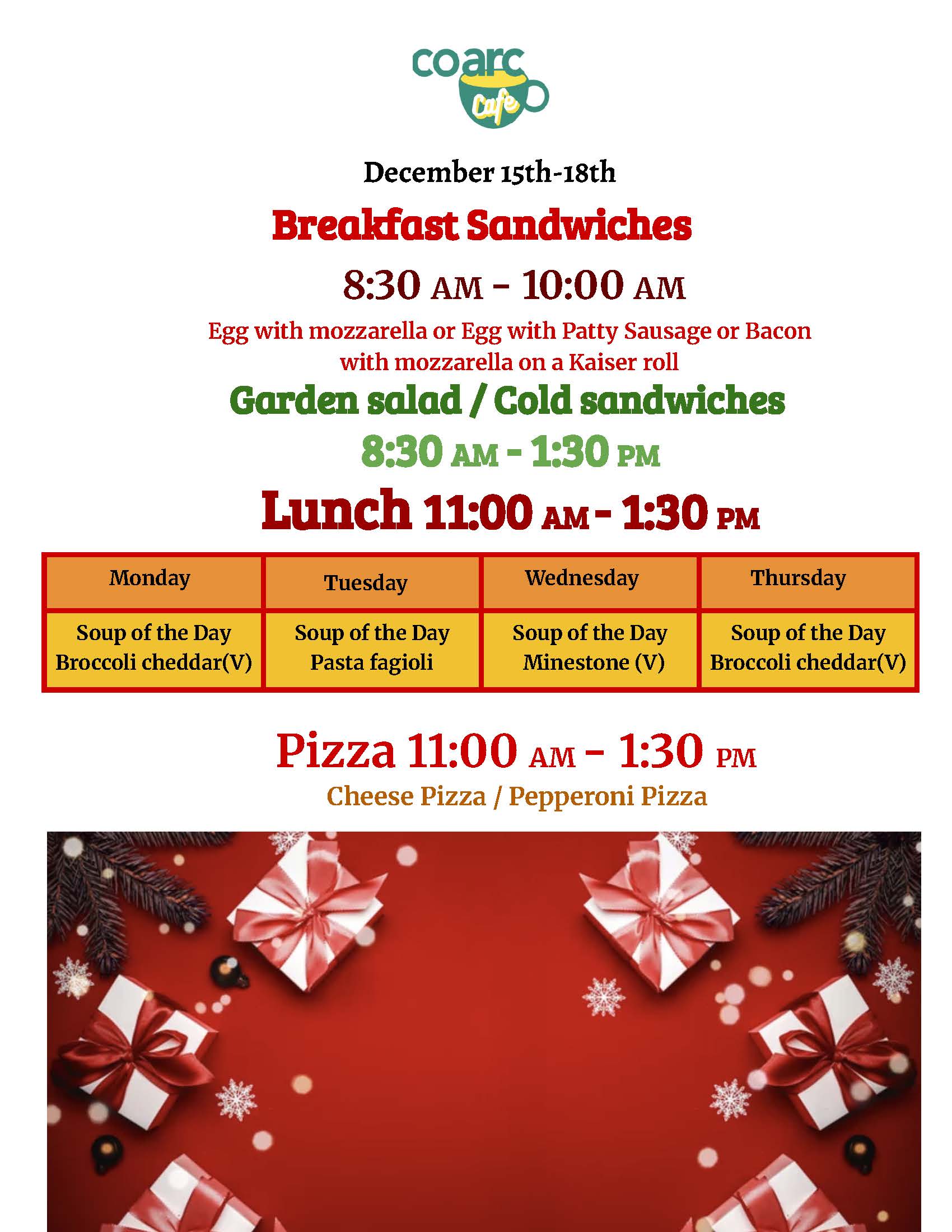 CoArc Cafe Menu: December 2025